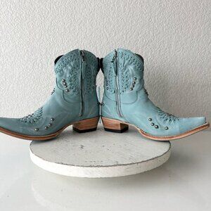 Lane COSSETTE Womens Cowboy Bootie 7.5 Blue Leather Cowgirl Western Ankle Boots