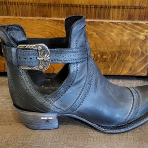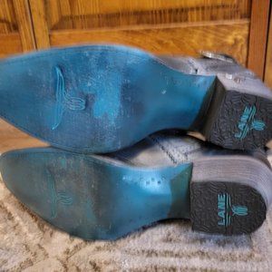 Beautiful navy blue color. Like new w/o tags. Only been worn for a stroll around the house.... the turquoise color of not even scuffed off the bottom. So cute! But don't work for my right foot with no arch! Seem to be a discontinued style from Lane. Can be found on other sites like Sheplers and Rivertrail Mercantile for between $250-350.