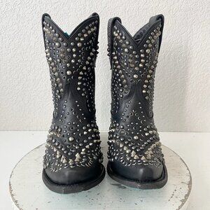 Lane DOLLY Womens Cowboy Boots in Jet Black Leather with Silver Spikes and studs in a Short Ankle Western style Cowgirl Boot. The details on these are insane!