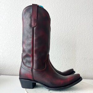 Lane EMMA JANE Womens Cowboy Boots in Black Cherry Leather with a Western Snip Toe and 13" Mid Calf High Shaft