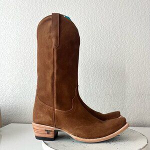 Lane EMMA JANE Womens Cowboy Boots in Brown Toffee Suede with a Western Snip Toe and 13" Mid Calf High Shaft