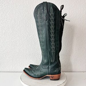 Lane LEXINGTON Knee High Womens Cowboy Boots in Emerald Green Leather with a Western Pointed Snip Toe and a 17.5" Shaft.