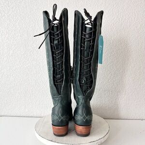 Lane LEXINGTON Knee High Womens Cowboy Boots 5.5 Green Western Cowgirl Lace Up