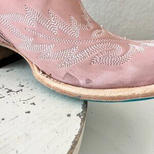 Lane LEXINGTON Over The Knee Womens Cowboy Boots in Blush Pink leather with a Western Snip Toe and Adjustable Corset that is Wide calf friendly.