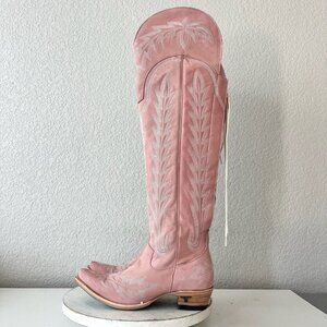 Lane LEXINGTON Over The Knee Womens Cowboy Boots in Blush Pink leather with a Western Snip Toe and Adjustable Corset that is Wide calf friendly.