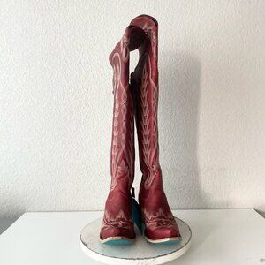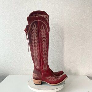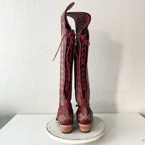Lane LEXINGTON Over the Knee Womens Cowboy Boots 9.5 Red Western Cowgirl Lace Up