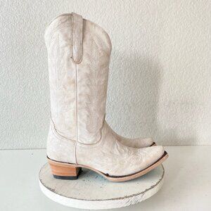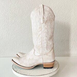 Lane LEXINGTON White Cowboy Boots Womens 8 Western Cowgirl Mid Calf Pointed Toe
