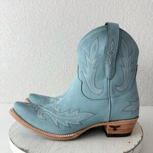 Lane LEXINGTON Womens Cowboy Bootie 8.5 Western Blue Leather Cowgirl Short Boots