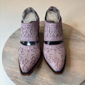 Lane Lavender Leather Western Cut-Out Booties Women’s Size 7 Embroidered Cowgirl