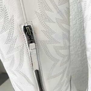 About the Boots: Designed to make a statement, this limited-edition Smokeshow features matte white leather with intricate embroidery that embodies both elegance and tradition. The scalloped edges and functional side zipper ensure the perfect mix of style and practicality. But the real standout details? Megan’s signature blue bottom, imprinted with her name, and a heart-shaped heel pin—a personal touch that makes this boot uniquely hers. Whether you're a die-hard Megan fan or simply love Western fashion, this boot is made to be worn, loved, and remembered.