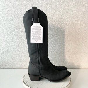 Lane PLAIN JANE Womens Cowboy Boots 8 Black Western Cowgirl Mid Calf Tall Zipper