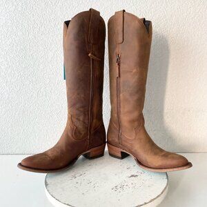 Lane PLAIN JANE Womens Cowboy Boots in Burnt Caramel Brown Leather with a tall 16" Mid Calf shaft and Sculpted Round Toe