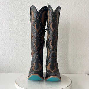 Lane Reverie Knee High Womens Cowboy Boots 7 Black Brown Western Cowgirl Lace Up