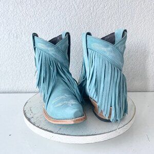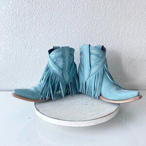 Lane SENITA FALLS Womens Cowboy Bootie 7.5 Blue Fringe Western Short Cowgirl