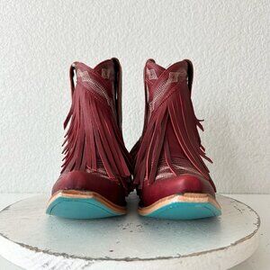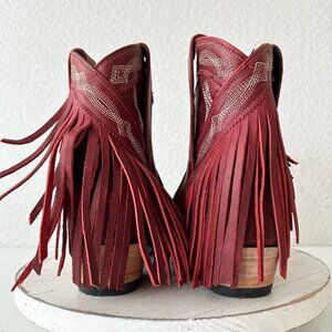 Lane SENITA FALLS Womens Cowboy Bootie 8 Red Fringe Western Short Cowgirl Boots