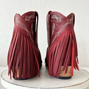 Lane SENITA FALLS Womens Cowboy Bootie 8 Red Fringe Western Short Cowgirl Boots