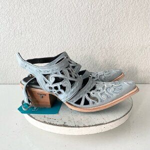 Lane SHALEY Robin Mule Womens Booties in Powder Blue Leather - Slip on Ankle Boots with a Western Pointed Snip Toe