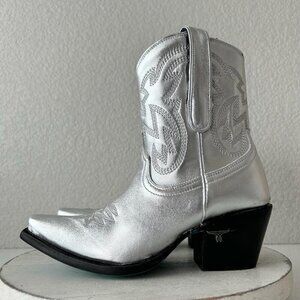 Lane SMOKESHOW Womens Cowboy Bootie 6 Silver Western Cowgirl Short Ankle Boots