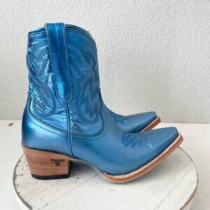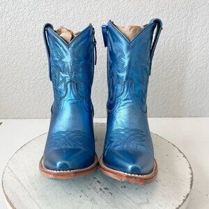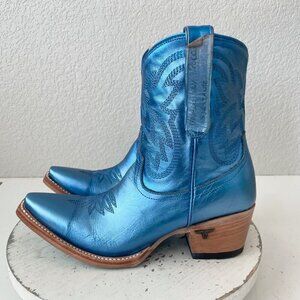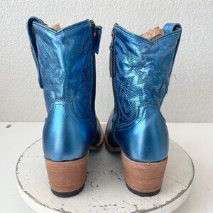 Lane SMOKESHOW Womens Cowboy Bootie in Metallic Cobalt Blue Leather with a Western Stitched Snip Toe and Short Ankle Shaft.