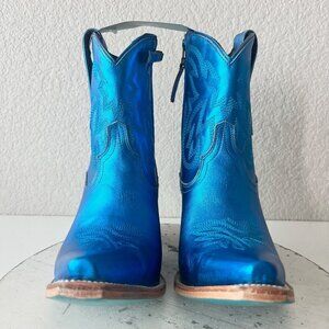 Lane SMOKESHOW Womens Cowboy Bootie in Metallic Cobalt Blue Leather with a Western Stitched Snip Toe and Short Ankle Shaft.