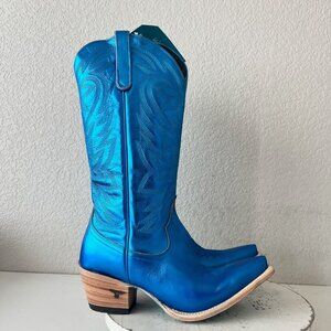 Lane SMOKESHOW Womens Cowboy Boots in Metallic Cobalt Blue Leather with a Western Stitched Pointed Snip Toe and 15" Mid Calf Tall Shaft