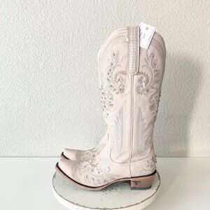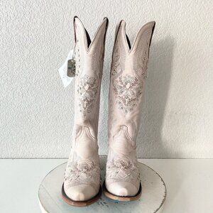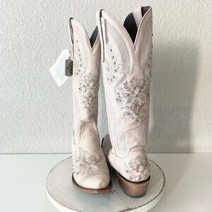 Lane Santorini Womens Cowboy Boots 8 White Western Cowgirl Mid Calf Pointed Toe