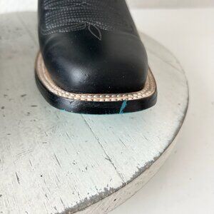 Lane Saratoga Womens Square Toe Cowboy Boots 8 Black Turquoise Western Mid Calf
