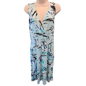 Lane bryant 14 / 16 blue Smocked stretch waist faux wrap sleevless v neck dress