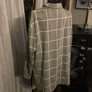 Grey & white (chalk look) /windowpane sweater knit blazer/cardigan/jacket - open front - sweater/sweatshirt