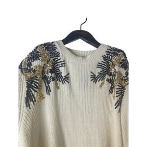 Lane bryant sequin shoulder cream knit dolman sleeve sweater sz 22/24