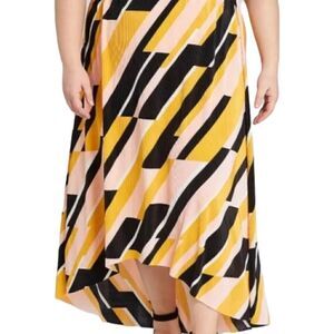 Lane Bryant Asymmetric Pleated Skirt Plus Sz 14 16 Midi Elastic Accordion Flowy