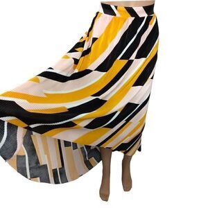 Lane Bryant Asymmetric Pleated Skirt Plus Sz 14 16 Midi Elastic Accordion Flowy. Condition is pre-owned and EXCELLENT condition. Beautiful colorful pleated skirt. Lots of stretch. High Low Hem. Very flowy. Pull on. No rips, tears, holes or discolorations. Size 14/16 is equivalent to a 1X as well.