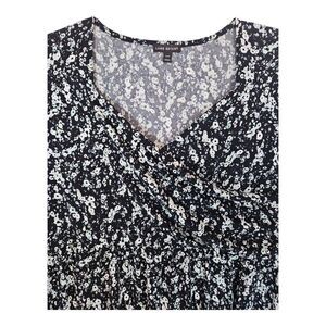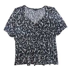 Lane Bryant Black Surplice Neck Elastic Waist Short Sleeve Floral Blouse 22/24