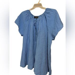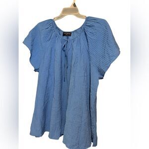 Elegant blouse with gathered neckline. Perfect for everyday wear. Tie front