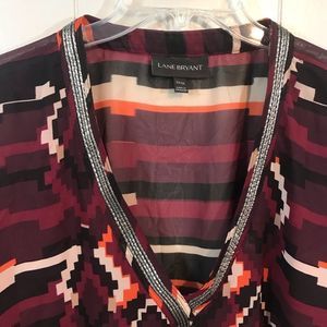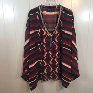 Lane Bryant Burgundy Multi Plus Southwest Dolman Long Sleeve Beaded Top 22/24