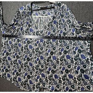 Lane Bryant Button Front Top Dark Blue Floral Womens Sz 30/32 Ruched NEW NWT