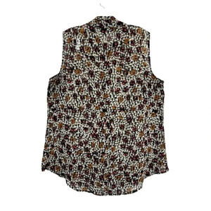 Lane Bryant Collared Button Front Tank Top 16 Split Open Back Novelty Dots Brown