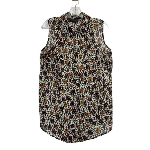 Lane Bryant Collared Button Front Tank Top 16 Split Open Back Novelty Dots Brown