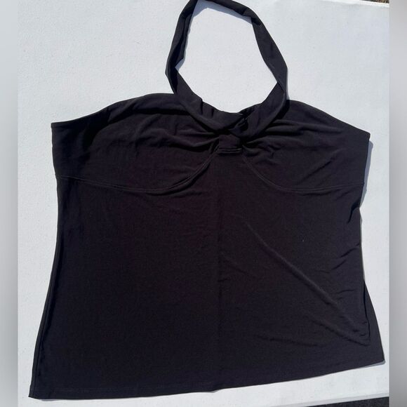 Chic black halter top with a stylish design. Ideal for versatile wear.
