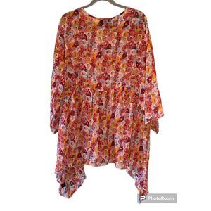 Lane Bryant Floral Sheer Shirt Orange Pink Red White Blue Size 18/20