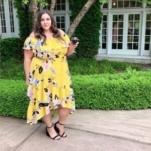 Lane Bryant Yellow & Black Floral Tiered Hem Off The Shoulder Dress sz 26/28