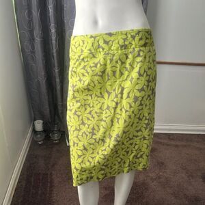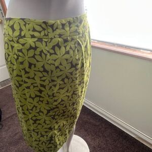 Lane Bryant Green/Taupe Floral back zip and split pencil skirt, size 20 (98% Cotton, 2% Spandex)