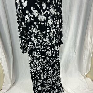 Lane Bryant Monochrome Floral Pattern Dress size 18/20 v neck stretchy