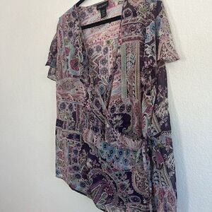 Lane Bryant Purple Paisley Plus Size 22/24 Wrap Blouse Floral Peasant bohemian