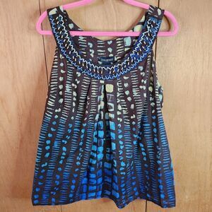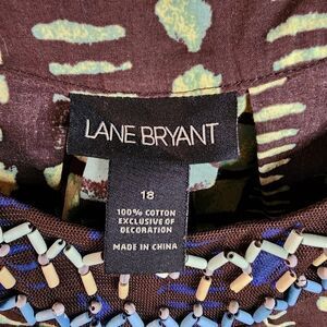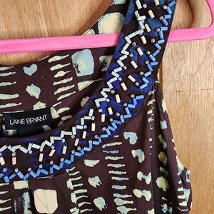 Lane Bryant Sleeveless Embellished Scoop Neck Blouse Size 18, brown in color with blue and greens design.