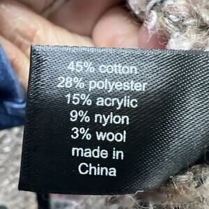 45% cotton 28% polyester 15% acrylic 9% nylon 3% wool
