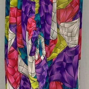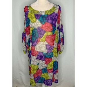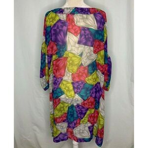 Lane Bryant Tunic Top 22 24 Multicolored Diamonds Dolman Sleeve Sheer Belt Loops