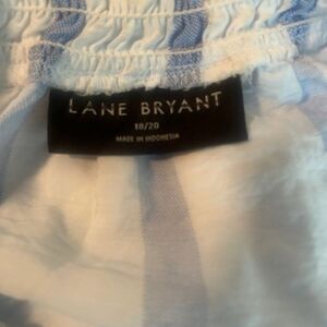Lane Bryant White/Blue stripe 1 button peep hole front tunic, size 18/20 (85% Rayon, 15% Nylon)