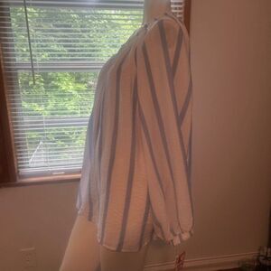 Lane Bryant White/Blue stripe 1 button peep hole front tunic, size 18/20