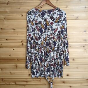 Lane Bryant Womens Top 22/24 Multicolor Paisley Print Blouse Tie Waist